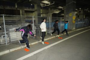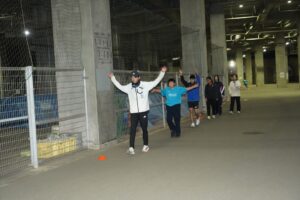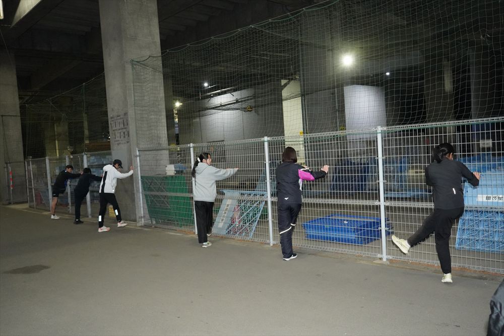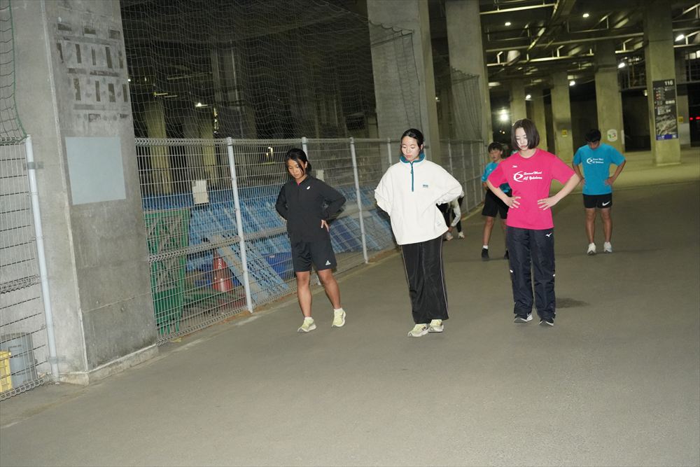 では、Jog・動的ストレッチから行い、