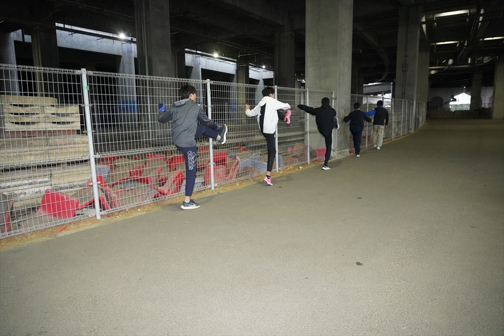 では、Jog・動的ストレッチから行い、