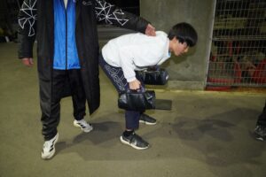 上半身の柔軟性向上に繋がるような練習も取り入れてみました。