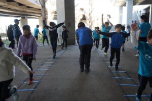 練習開始頃になると強い北風は和らぎ、