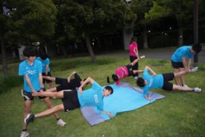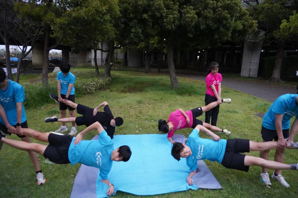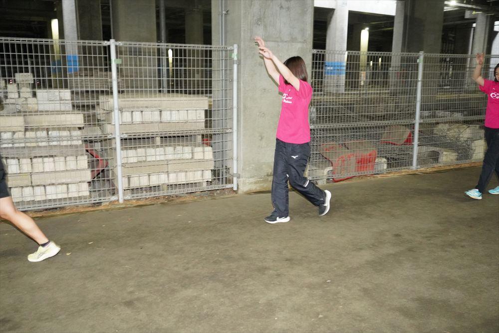 では、Jog・動的ストレッチから行い、