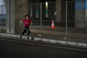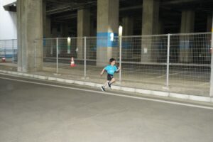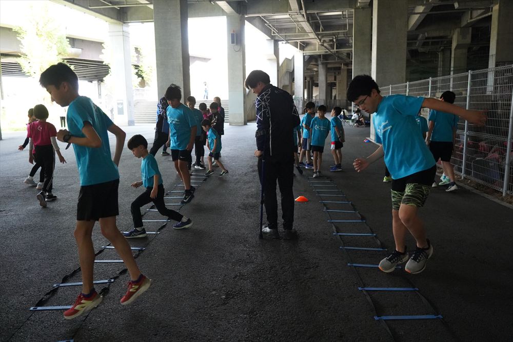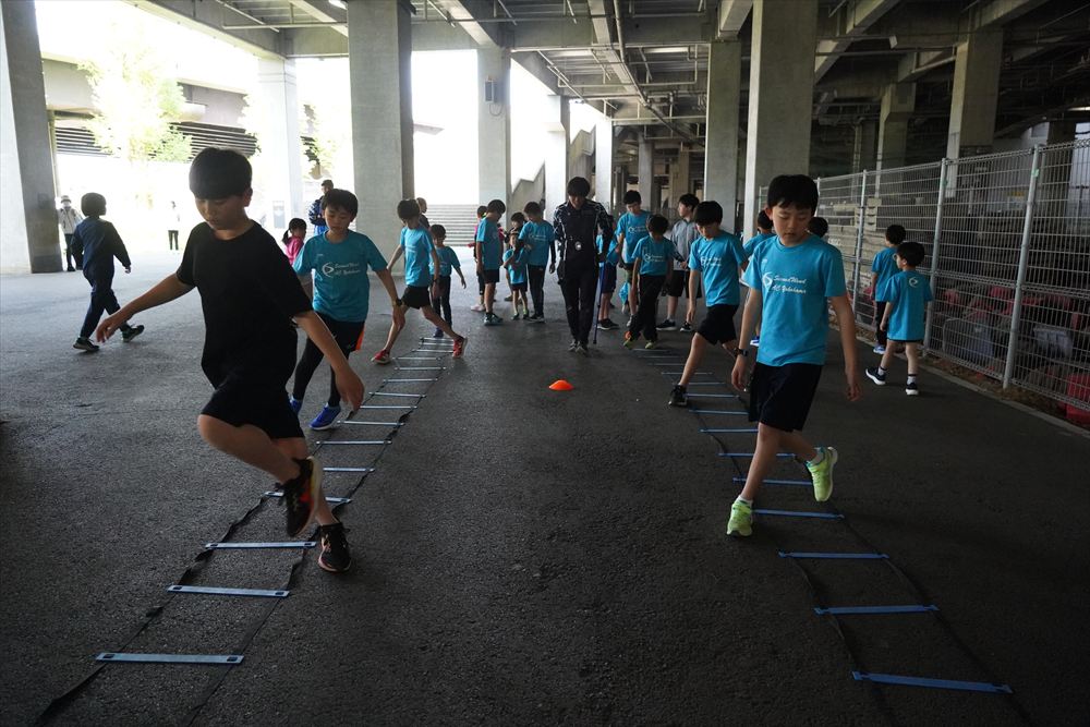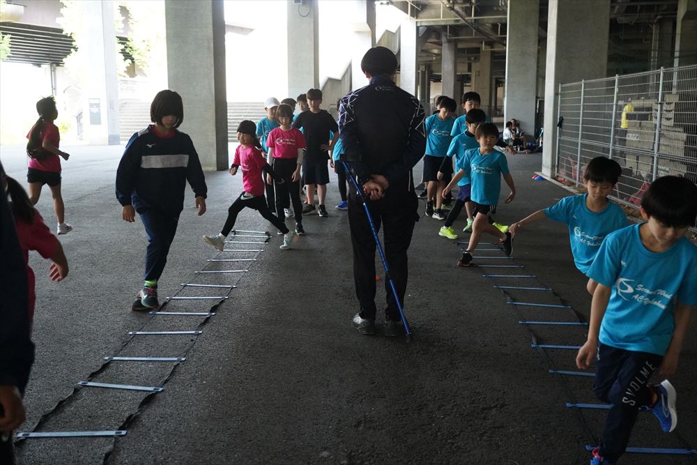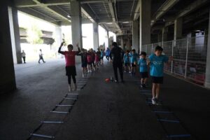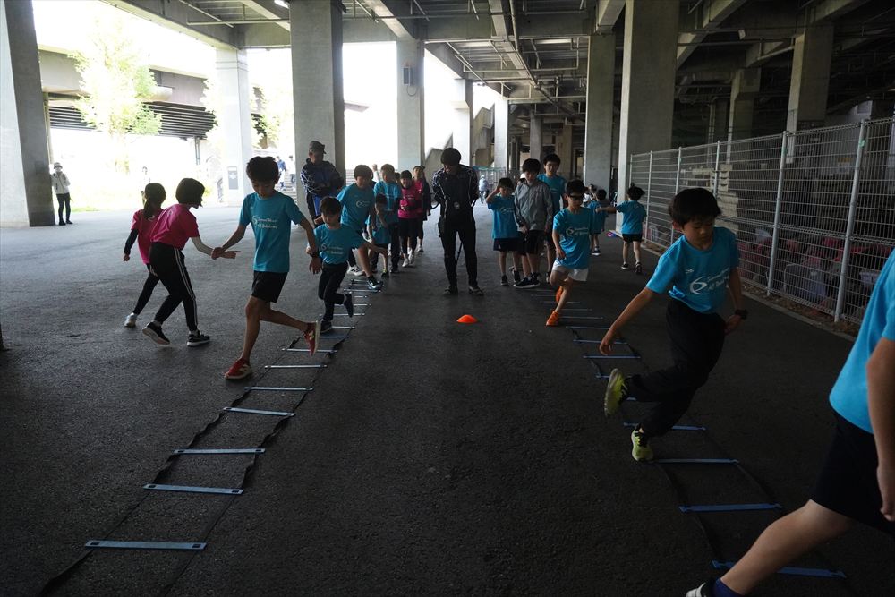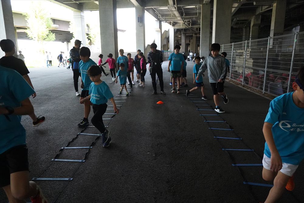 では、Jog・体操の後に、ラダードリルから。