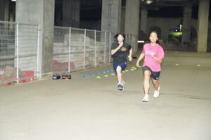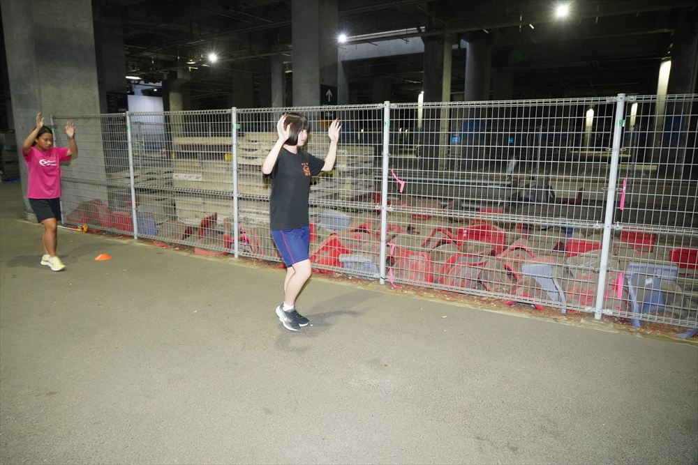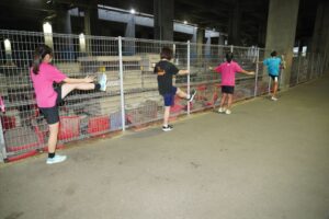 では、Jog・動的ストレッチから行い、