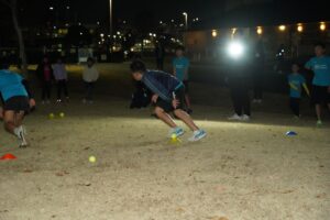 ダッシュ、スピードを緩める、そしてボールをつかむところまで、